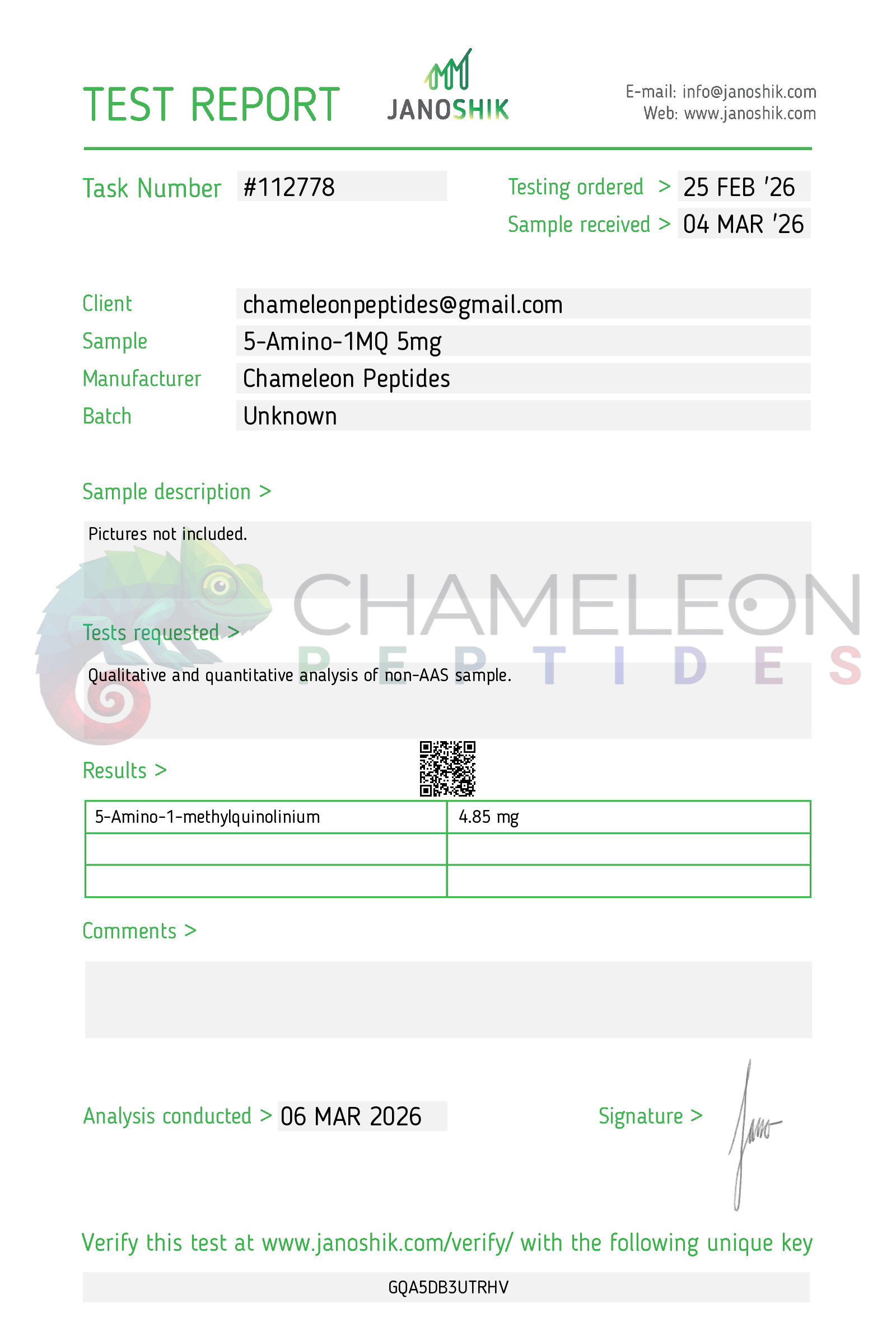 5-Amino-1MQ 5mg research peptide vial - Chameleon Peptides
