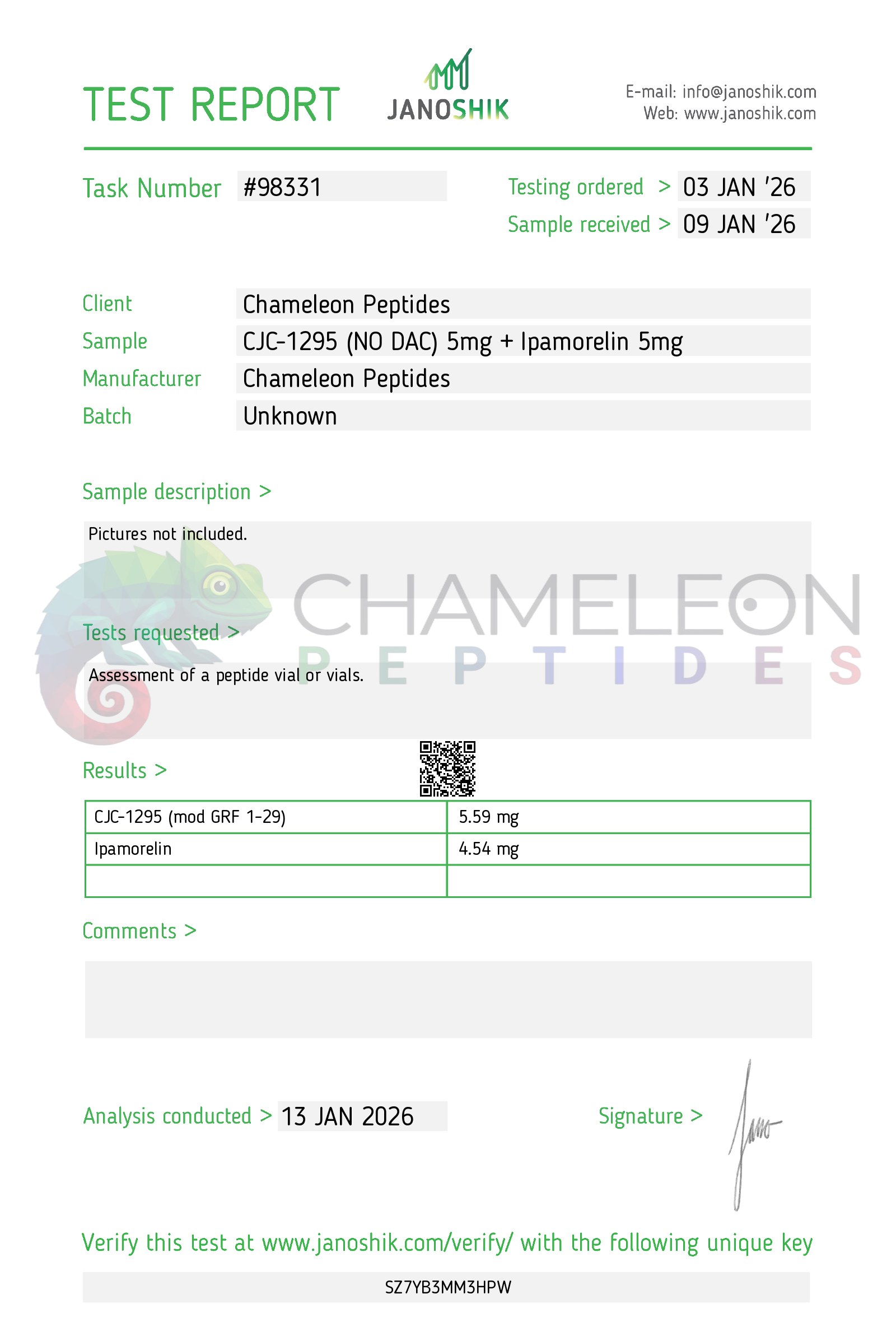 A new batch of CJC-1295 (NO DAC) + Ipamorelin 5mg+5mg is on the way, sourced from the same suppliers behind Batch 1 — which was independently tested by Janoshik Analytical with consistently strong results. Samples will be sent to Janoshik upon receipt, and updated COAs will be posted here as results come in.